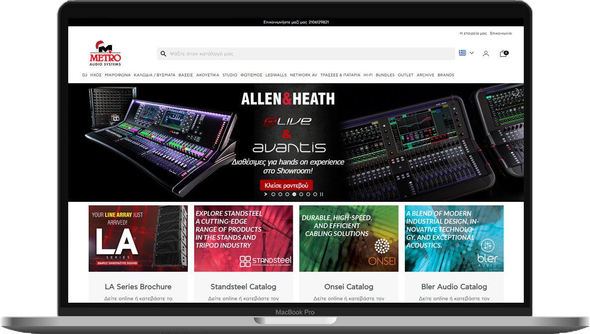 Το αποτέλεσμα είναι μια σύγχρονη και αποδοτική ιστοσελίδα που προσφέρει άριστη εμπειρία πλοήγησης σε όλες τις συσκευές – desktop, tablet και mobile. Η δομή και ο σχεδιασμός της πλατφόρμας καθοδηγούν τον επισκέπτη με σαφήνεια στο εύρος των προϊόντων και των λύσεων ήχου που προσφέρει η Metro Audio Systems.